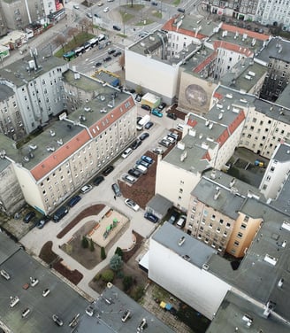 Realizację parkingów, placów miejskich oraz stref pieszo-rowerowych.